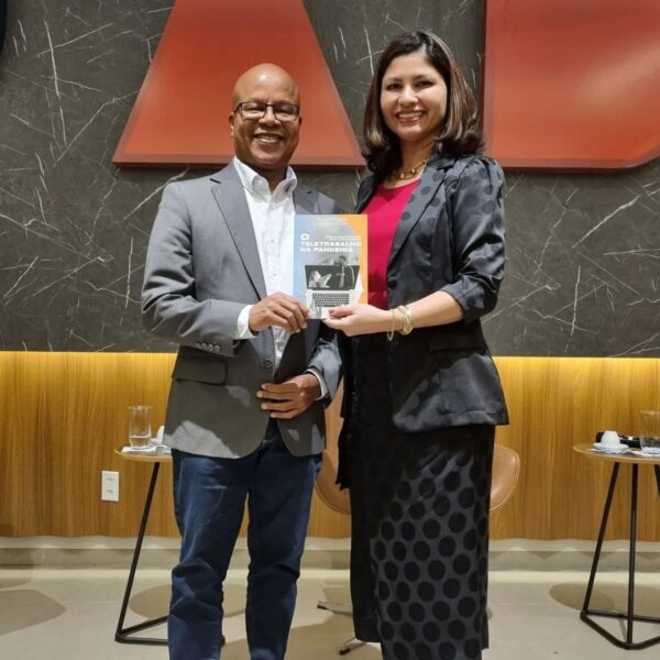 Na ocasião do evento, o advogado Ezequiel Cruz compartilhou o tema de sua pesquisa que resultou na obra de co-autoria “O teletrabalho na pandemia” e ainda sorteou alguns exemplares para o público “.
