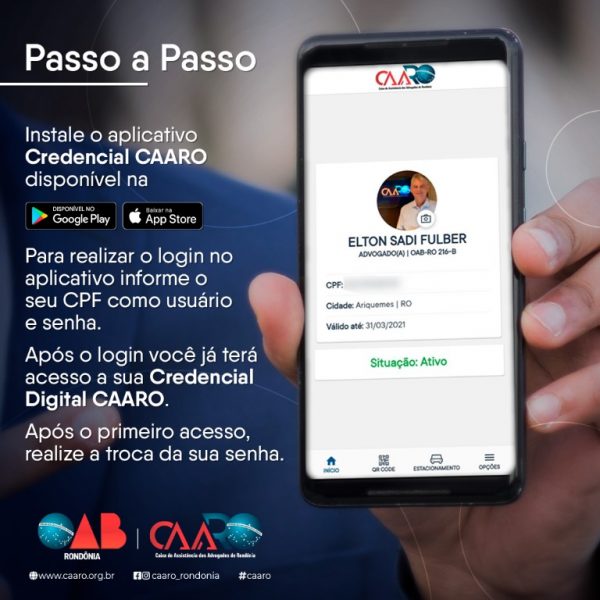 Além da identificação do associado da CAARO, o aplicativo consta também com a relação de todas as empresas parceiras do Programa Anuidade Zero e um rol de notícias atualizadas sobre a advocacia.