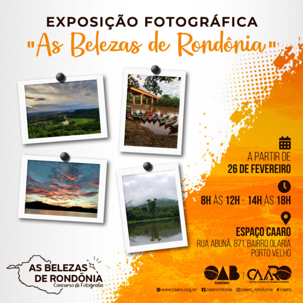As fotos selecionadas no 1º Concurso de Fotografias promovido pela Caixa de Assistência dos Advogados de Rondônia (CAARO) para os advogados do estado, serão expostas a partir desta sexta (26), no Espaço CAARO em Porto Velho.