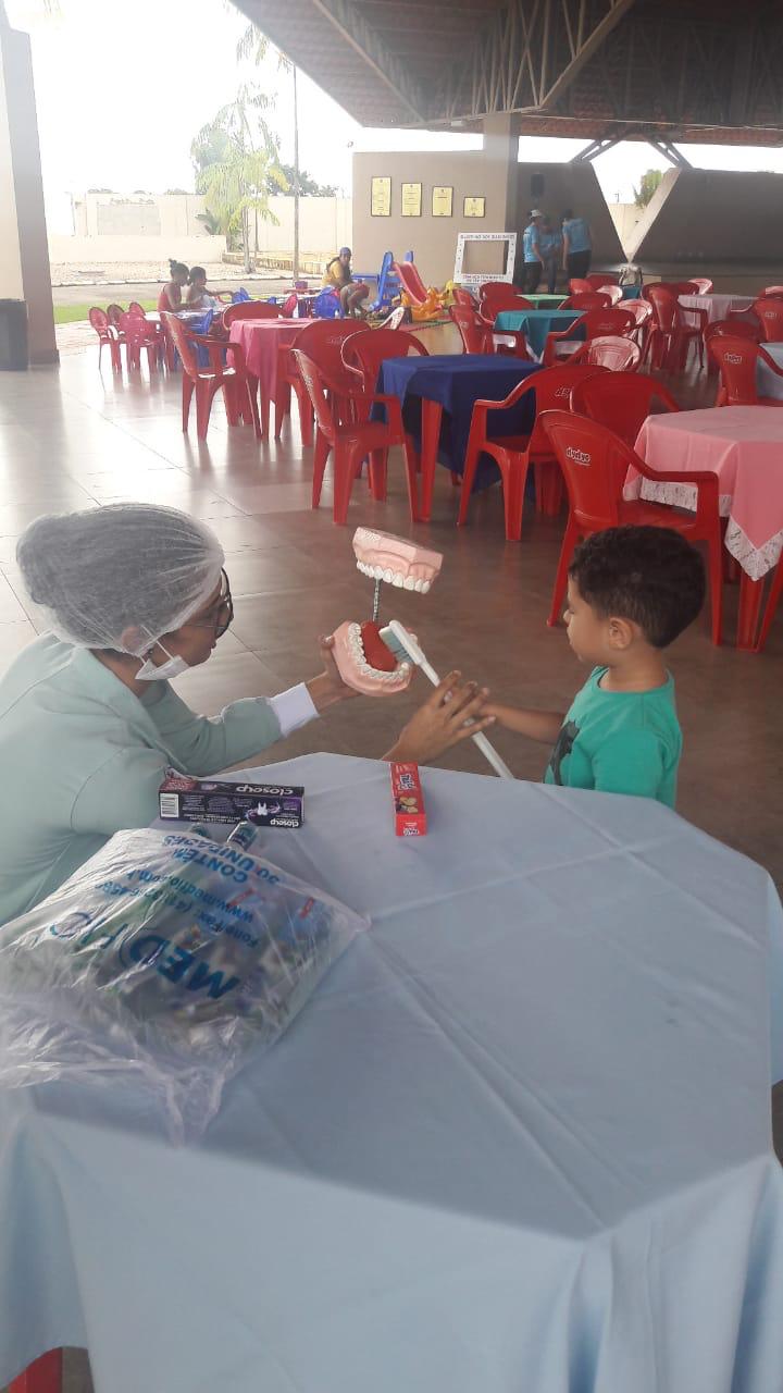 A Dentista Rebeca Bandeira e a Enfermeira da CAARO, Taina também deram orientações às crianças e suas famílias.