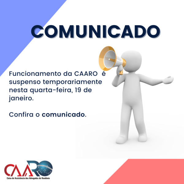 A Caixa de Assistência dos Advogados de Rondônia (CAARO) informa que a partir das 16h desta quarta-feira (19), o atendimento ao público em geral no Estacionamento e Espaço CAARO estará temporariamente suspenso, visto que esses locais passarão por sanitização.