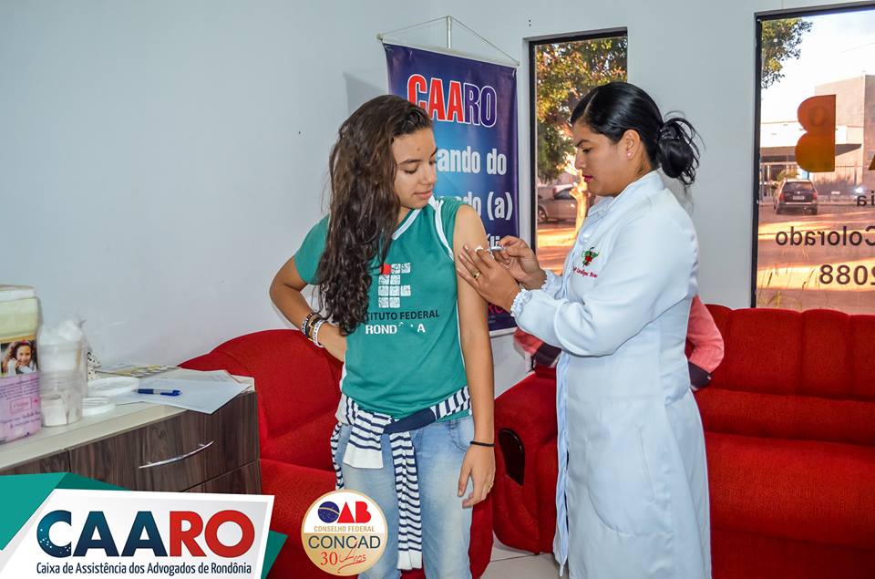 A caravana 2015 contra a H1N1 dá início a segunda semana de imunização no interior do Estado de Rondônia. O objetivo é prevenir os beneficiários da CAARO – Caixa de Assistência dos Advogados do Estado de Rondônia, contra a doença alcançando advogados, dependentes e estagiários. Vale ressaltar que a disponibilização das vacinas acontece gratuitamente, dessa forma a Caixa cumpre seu papel como braço assistencial da OAB-RO – Ordem dos Advogados do Estado de Rondônia com ações impactantes e abrangentes ao longo do ano.