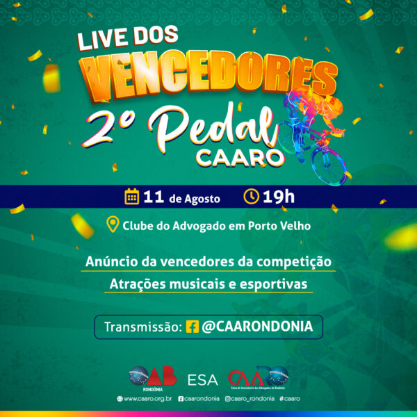 Na próxima quarta-feira (11), data em que se comemora o dia do advogado, a Caixa de Assistência dos Advogados de Rondônia (CAARO), promove a Live do 2º Pedal CAARO para anunciar os vencedores da competição que virou tradição entre os profissionais do direito e seus familiares.