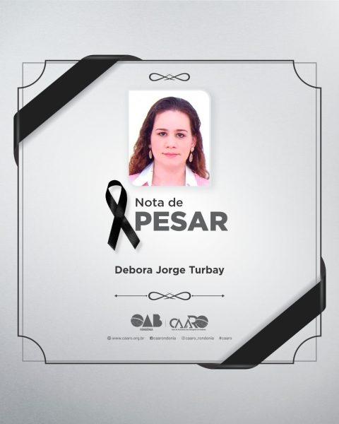 A Caixa de Assistência dos Advogados de Rondônia (CAARO) comunica, com profundo pesar, o falecimento da advogada, Debora Jorge Turbay.