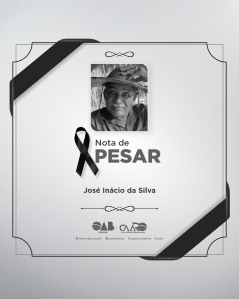 A Caixa de Assistência dos Advogados de Rondônia (CAARO), lamenta com muito pesar, o falecimento do Senhor José Inácio da Silva, pai do Advogado Odair José, da Subseção de Ouro Preto do Oeste.