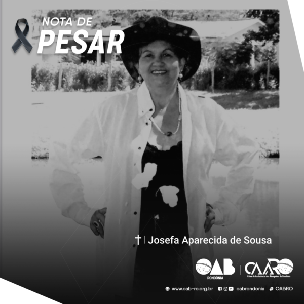 A OAB Rondônia e a Caixa de Assistência dos Advogados de Rondônia (CAARO), lamentam o falecimento da senhora Josefa Aparecida de Sousa, avó da advogada Anadrya Sousa Terada Nascimento.