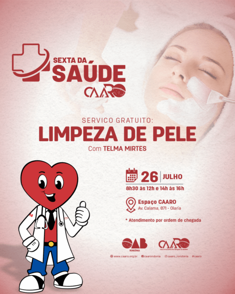 A Caixa de Assistência dos Advogados de Rondônia (CAARO) convida a advocacia para mais uma edição da “Sexta da Saúde”. Nesta sexta-feira (26), o destaque será a Limpeza de Pele, proporcionando um momento de autocuidado e bem-estar.