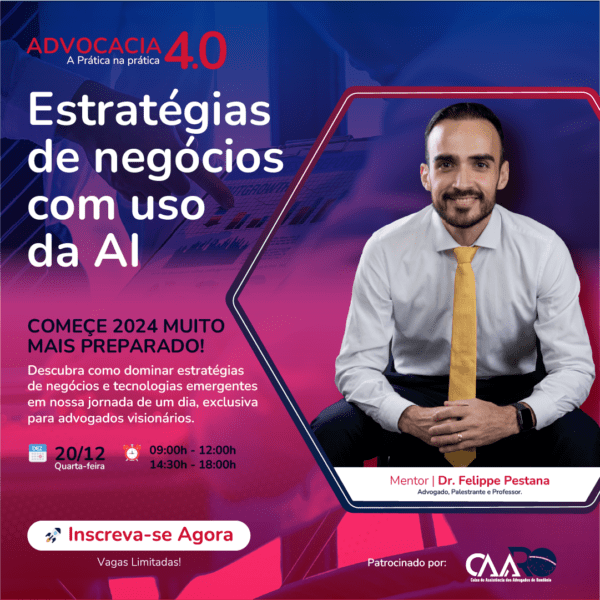 O workshop, liderado pelo renomado mentor Dr. Felippe Pestana, mergulha em áreas-chave que moldarão o futuro dos profissionais do direito: